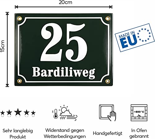 Sosenco Numero civico con nome della strada, 20 x 15 cm, in ceramica smaltata, resistente alle intemperie, personalizzabile, verde