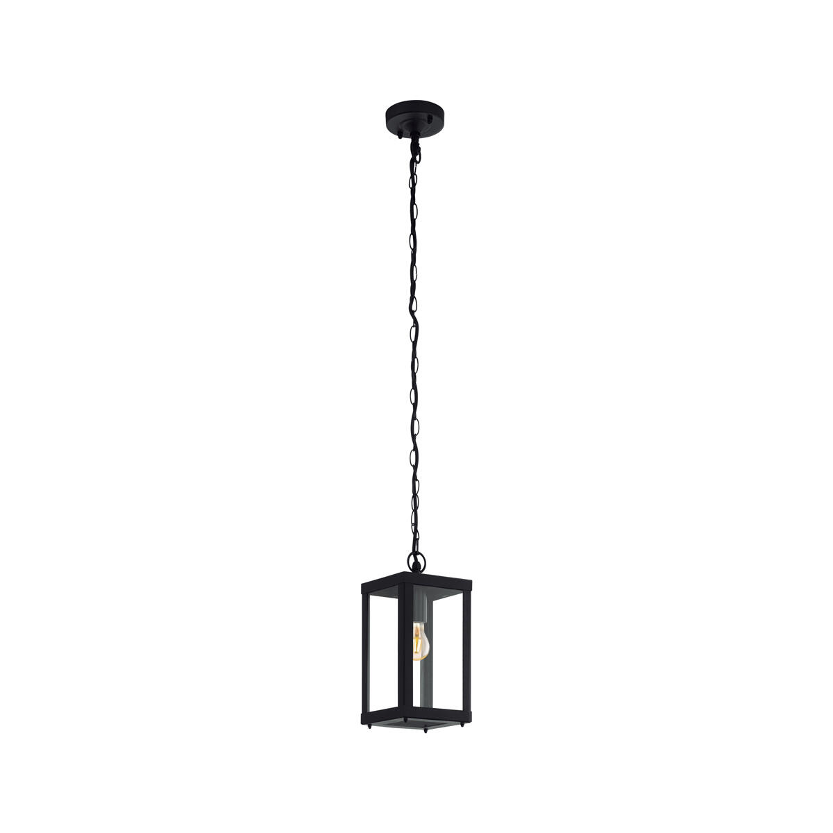 ALAMONTE 1 Sospensione 1x60W E27 Struttura alluminio verniciato nero / diffusore vetro trasparente e alluminio verniciato nero. IP44 Dimensioni: 15 x 15 x H128,5