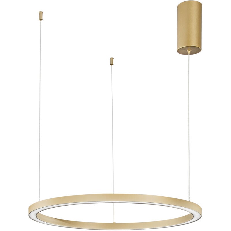 Collezione dalle forme circolari con struttura in alluminio bianco, oro o nero goffrato con diffusore in acrilico. Cavi regolabili in acciaio. Colore: Oro Materiale: Alluminio Tipo sorgente o lampadina richiesta: LED Watt: 30 Lumen: 6000 Lumen CCT: Si Grado di protezione da corpi solidi e acqua: IP20 (solo uso interno) Dimensioni: 150x60x60 cm. Il brand Luce Ambiente e Design pone l'accento su tendenze, design italiano e qualità dei materiali. Tutto ciò che serve per illuminare e allo stesso tempo arredare i tuoi ambienti domestici. Vasta selezione di illuminazione da soffitto, parete o superifice. Lasciati affascinare dalle linee sinuose, accostamenti audaci e un tocco di tecnologia che non guasta mai. La Gruppo FT si impegna nella ricerca dei migliori prodotti da offrire ai propri clienti, focalizzandosi su velocità e servizio post-vendita.