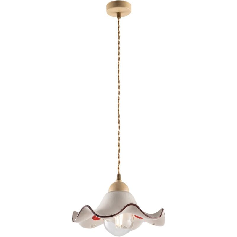 Collezione Anemone LOOK RUSTICO E ACCOGLIENTE Sospensione a 1 luce con struttura in ferro laccato avorio con decorazione effetto decapè.. Il diffusore è in ceramica traforata a decorata a mano in bianco e marrone. Il filo elettrico intrecciato in tinta consente di regolare l'altezza del punto luce in base all'uso, come sopra un tavolo da pranzo o piano di lavoro, rendendola adatta sia per soffitti bassi che alti. Il design rustico e l'uso di materiali naturali come la ceramica e il ferro laccato conferiscono al lampadario un aspetto tradizionale e accogliente. Disponibile anche in nero decorato ruggine.