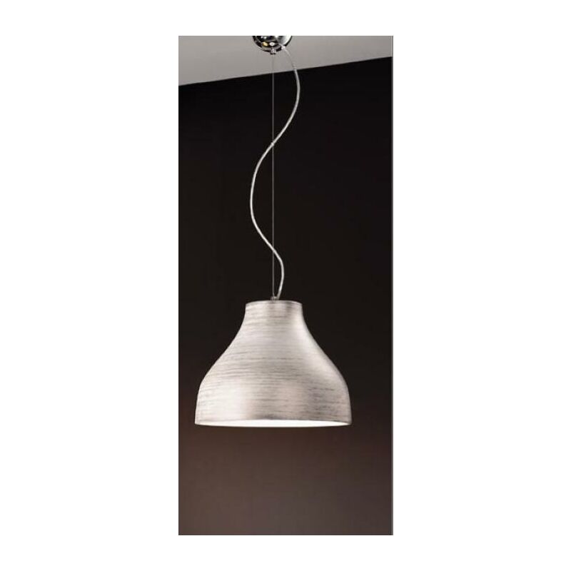 LAMPADA A SOSPENSIONE IN VETRO DECORATO GRAFFIATO DI COLORE FOGLIA ARGENTO;