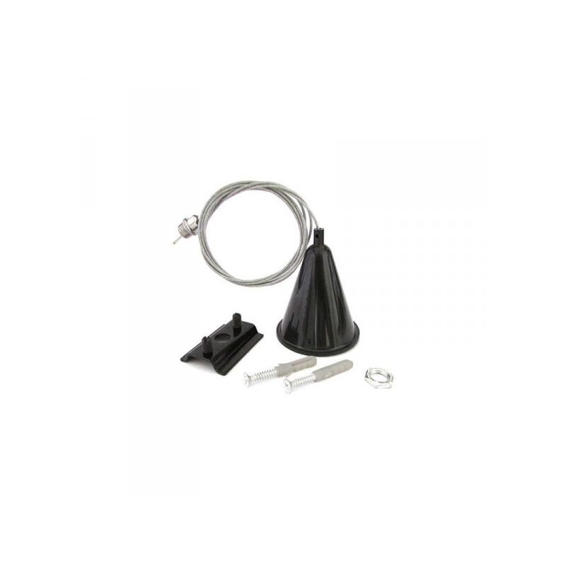 Compatibile con nostro binario guida nero da 1 metro (Cod.CB0080 e CB7180), 2 metri (Cod. CB7280) e 3 metri (Cod. CB7380) Un Kit Cavo Sospensione per Binario Elettrificato Monofase - inserzione valita per un solo Kit (UN SOLO LATO) - Colore Nero- - Accessori Per Binario Monofase- Dati Tecnici: - Colore:Nero - Lunghezza Cavo: 150cm - Misura Cono: Diametro base 55mm,altezza totale 72mm - Misura Piastra: 45mmx33mmx8mm - Peso: 65g Kit Composto da: - 1 Cavo isolato da 1,5 metri;