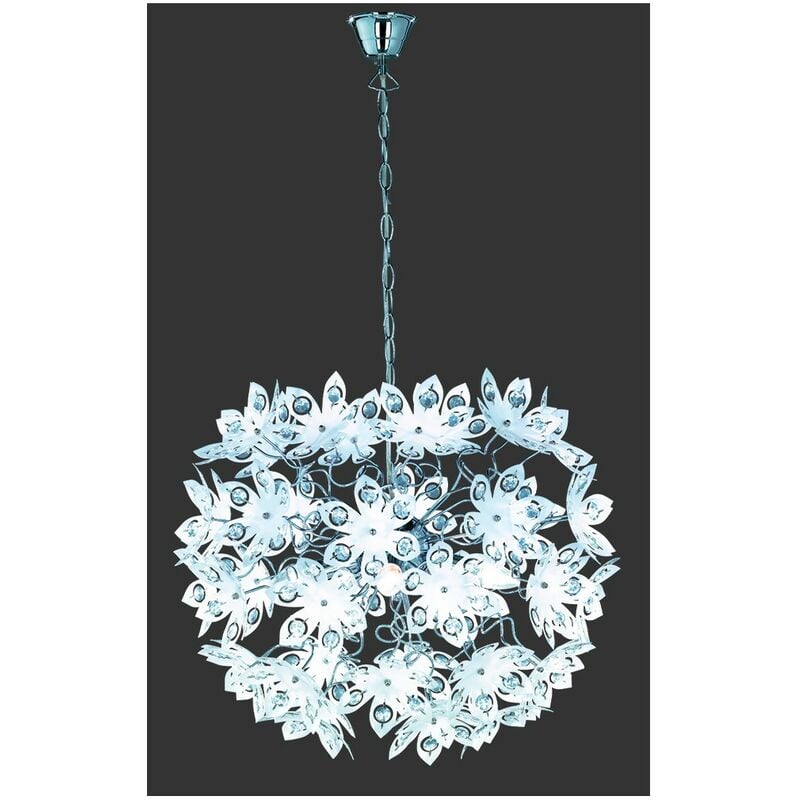 La sospensione BLOWBALL di Trio Lighting è realizzata da una struttura in metallo finitura cromo e fiori decorativi in acrilico bianco. Altezza regolabile. E' possibile installare 5 lampadine E14 max 40 watt (acquistabili separatamente). L'attacco E14 permette di montare diversi tipi di lampadine, dalle alogene a quelle a Led, scegliendo la tonalità che più soddisfa le proprie esigenze. Delicata ed elegante questa sospensione è adatta a diverse tipologie di ambienti della vostra casa. Perfetta per un salotto o una camera da letto. Disponibile anche la plafoniera della stessa serie.