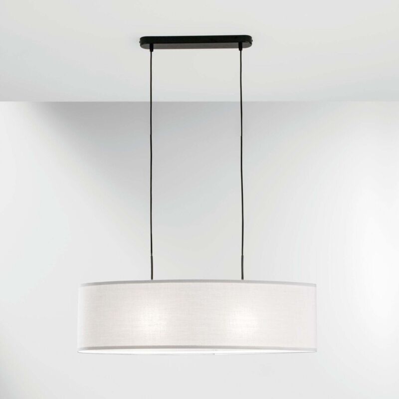Collezione dalle diverse configurazioni con struttura in metallo e paralumi in tessuto bianco, nero o grigio. Colore: Bianco Materiale: Metallo e tessuto Tipo sorgente o lampadina richiesta: E27 CCT: No Dimmerabile: No Smart function: No Grado di protezione da corpi solidi e acqua: IP20 (solo uso interno) Altre informazioni: Dimensioni: 150x78x22 cm. Il brand Luce Ambiente e Design pone l'accento su tendenze, design italiano e qualità dei materiali. Tutto ciò che serve per illuminare e allo stesso tempo arredare i tuoi ambienti domestici. Vasta selezione di illuminazione da soffitto, parete o superifice. Lasciati affascinare dalle linee sinuose, accostamenti audaci e un tocco di tecnologia che non guasta mai. La Gruppo FT si impegna nella ricerca dei migliori prodotti da offrire ai propri clienti, focalizzandosi su velocità e servizio post-vendita.