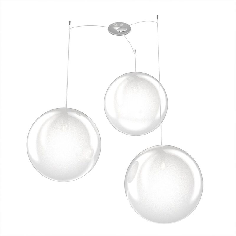 Collezione Glitter LAMPADE CHE SCINTILLANO DI LUCE E CLASSE Sospensione composta da una tre sfere in vetro soffiato trasparente dal diametro di 40cm e con decentratori.. Tutte le sospensioni sono regolabili in altezza in quanto dotate di dispositivi serracavo automatici. La finitura graniglia è realizzata mediante l'applicazione di granuli di vetro sul vetro trasparente che, una volta illuminato, lo rendono brillante. Le strutture in metallo sono cromate. La Serie Glitter è disponibile in diverse dimensioni e colori, per abbellire ogni ambiente con stile e raffinatezza. Scopri la Serie Glitter e lasciati incantare dalla sua bellezza e qualità.Questo articolo è disponibile in diverse finiture e/o dimensioni. E' possibile indicarlo nell'apposito campo NOTE presente in conclusione di ordine oppure contattarci dopo aver effettuatol'ordine.