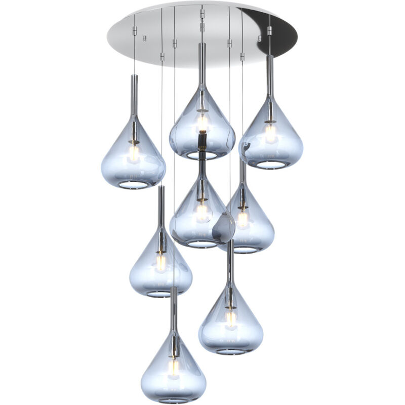 Collezione Kona LAMPADA MODERNA CHE CATTURA LO SGUARDO Sospensione 8 luci con struttura in metallo color cromo, un rosone tondo e 8 vetri pirex soffiato colore blu come diffusore.. Le finiture dei vetri disponibili sono trasparente, verde, blu, fumè ed ambra. Le strutture in metallo sono disponibili nelle finiture cromo, bianco e ottone satinato. Nella confezione sarà compreso il portalampada nelle finiture cromo, otttone satinato e bianco, dove il cliente al momento dell' installazione sarà libero di scegliere il colore desiderato.Questo articolo è disponibile in diverse finiture e/o dimensioni. E' possibile indicarlo nell'apposito campo NOTE presente in conclusione di ordine oppure contattarci dopo aver effettuatol'ordine.