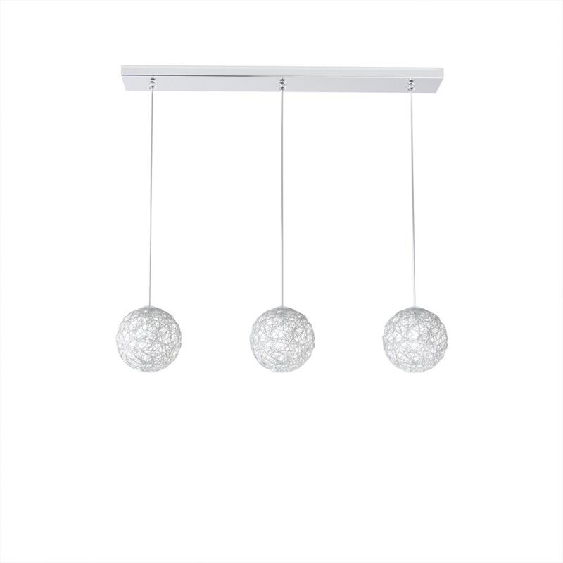 Collezione Willow LA LUCE CHE AVVOLGE Sospensione 3 luci composta da struttura in metallo cromato rettangolare lineare, ogni luce da due sfere decorative concentriche in vetro.. Realizzate in filo di alluminio a forma di gomitolo, che crea un gioco di riflessi che richiama la creatività dell'arte. Willow è la luce che si adatta a ogni ambiente, dal salotto alla camera da letto, dallo studio alla cucina.Questo articolo è disponibile in diverse finiture e/o dimensioni. E' possibile indicarlo nell'apposito campo NOTE presente in conclusione di ordine oppure contattarci dopo aver effettuatol'ordine.