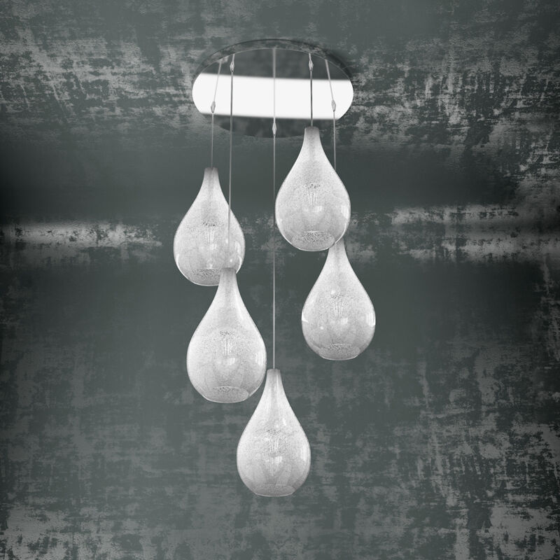 Collezione Drop AGGIUNGI UN TOCCO DI ELEGANZA SOSPESA Sospensione dal rosone tondo composta da struttura e rosone in metallo di colore cromo e da 3 gocce in vetro soffiato in finitura graniglia.. Le finiture Cromo e Rame sono trattamenti superficiali che riducono solo parzialmente l'emissione luminosa creando delle trasparenze e degli effetti che rendono l'ambiente circostante rilassante e sofisticato. La finitura graniglia è realizzata mediante l'applicazione di granuli di vetro sul vetro trasparente che, una volta illuminato, lo rendono brillante. Le strutture in metallo sono cromate. All'interno di ciascuna confezione verrà fornita un adattatore da E14 ad E27 che permetterà l'installazione di lampadine con attacco E27. Il prodotto è disponibile anche nei colori della struttura in Ottone Satinato e Bianco e in finitura del vetro soffiato cromo. Il prodotto è disponibile anche con 8 gocce di vetro soffiato in tutte le finiture esistenti.Questo articolo è disponibile in diverse