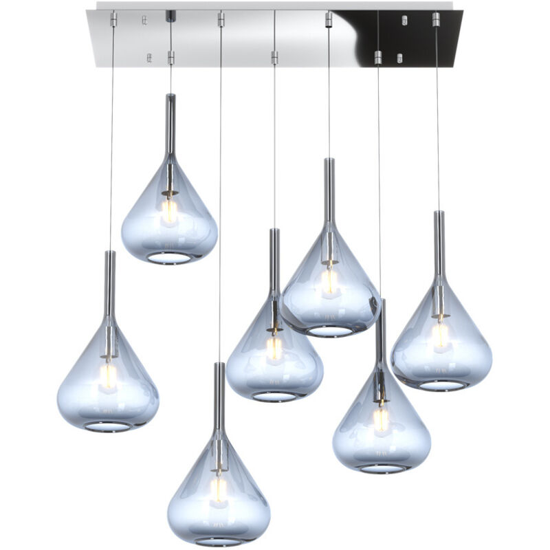 Collezione Kona LAMPADA MODERNA CHE CATTURA LO SGUARDO Sospensione 7 luci con struttura in metallo color cromo, un rosone rettangolare e 7 vetri pirex soffiato colore blu come diffusore.. Le finiture dei vetri disponibili sono trasparente, verde, blu, fumè ed ambra. Le strutture in metallo sono disponibili nelle finiture cromo, bianco e ottone satinato. Nella confezione sarà compreso il portalampada nelle finiture cromo, otttone satinato e bianco, dove il cliente al momento dell' installazione sarà libero di scegliere il colore desiderato.Questo articolo è disponibile in diverse finiture e/o dimensioni. E' possibile indicarlo nell'apposito campo NOTE presente in conclusione di ordine oppure contattarci dopo aver effettuatol'ordine.