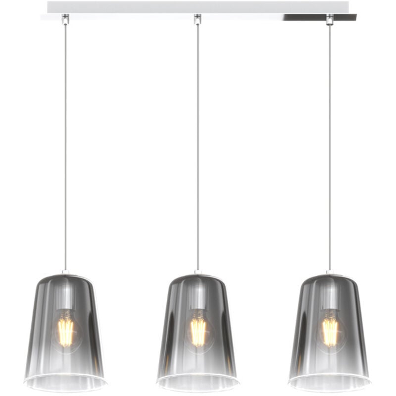 Collezione Shaded IL CONNUBIO PERFETTO TRA ARTE E LUCE Sospensione 3 luci con struttura in metallo cromo e rosone rettangolare e con 3 coni in vetro pirex soffiato colore cromo.. Le finiture dei vetri cromo, rame e ambra sono trattamenti superficiali sfumati verso il basso. Le strutture in metallo sono disponibili nelle finiture cromo, bianco e ottone satinato. La serie viene completata da una lampada da appoggioQuesto articolo è disponibile in diverse finiture e/o dimensioni. E' possibile indicarlo nell'apposito campo NOTE presente in conclusione di ordine oppure contattarci dopo aver effettuatol'ordine.