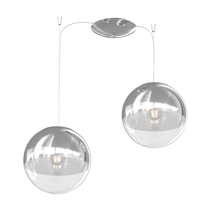Collezione Target LAMPADA CHE RIFLETTE LA TUA PERSONALITA' Sospensione 2 luci con decentratori in metallo cromo composta da due sfere in vetro soffiato con finitura cromo e trasparente dal diametro di 20cm.. Le sospensioni sono regolabili in altezza in quanto dotate di dispositivi serracavo automatici. La finitura cromo è un trattamento superficiale che riduce solo parzialmente l'emissione luminosa. Il vetro cromo e trasparente crea un effetto di luce e di riflessione, che valorizza lo spazio e l'arredamento. Scopri la Collezione Target e lasciati sedurre dalla sua eleganza e qualità.Questo articolo è disponibile in diverse finiture e/o dimensioni. E' possibile indicarlo nell'apposito campo NOTE presente in conclusione di ordine oppure contattarci dopo aver effettuatol'ordine.