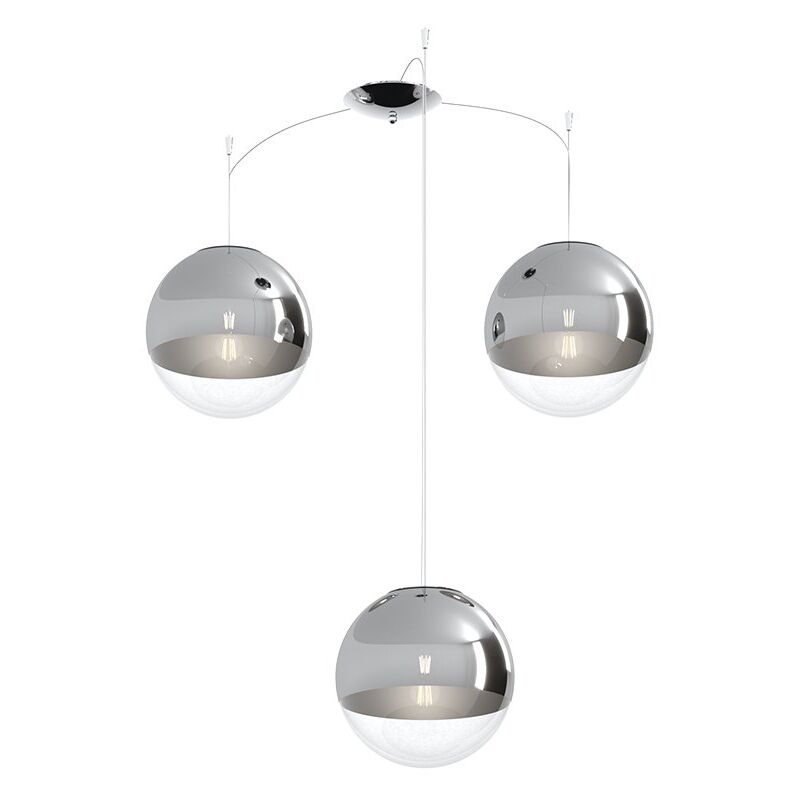 Collezione Target LAMPADA CHE RIFLETTE LA TUA PERSONALITA' Sospensione 3 luci con decentratori in metallo cromo composta da tre sfere in vetro soffiato con finitura cromo e trasparente dal diametro di 35cm.. Le sospensioni sono regolabili in altezza in quanto dotate di dispositivi serracavo automatici. La finitura cromo è un trattamento superficiale che riduce solo parzialmente l'emissione luminosa. Il vetro cromo e trasparente crea un effetto di luce e di riflessione, che valorizza lo spazio e l'arredamento. Scopri la Collezione Target e lasciati sedurre dalla sua eleganza e qualità.Questo articolo è disponibile in diverse finiture e/o dimensioni. E' possibile indicarlo nell'apposito campo NOTE presente in conclusione di ordine oppure contattarci dopo aver effettuatol'ordine.