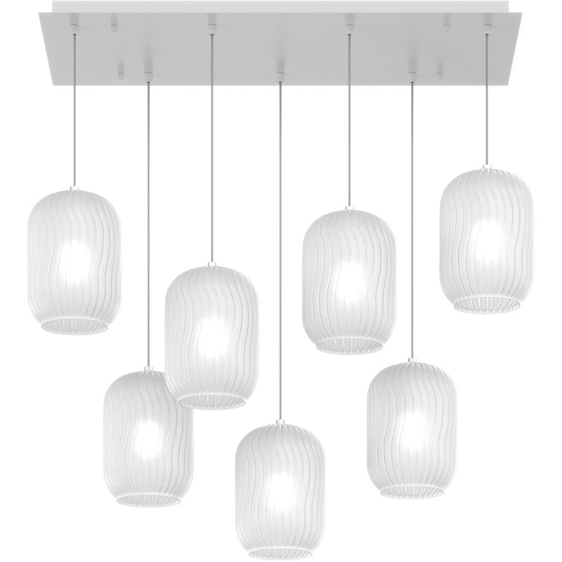 Collezione Tender UN TOCCO DI DELICATEZZA ILLUMINANTE Sospensione 7 luci con cavo regolabile e struttura in metallo colore bianco. Come diffusori 7 vetri soffiati in finitura trasparente e ambra.. Le finiture dei vetri sono trasparente, bianco fog, ambra, verde, blu e fumè. Le strutture in metallo sono disponibili nelle finiture cromo, bianco e ottone satinato.Questo articolo è disponibile in diverse finiture e/o dimensioni. E' possibile indicarlo nell'apposito campo NOTE presente in conclusione di ordine oppure contattarci dopo aver effettuatol'ordine.