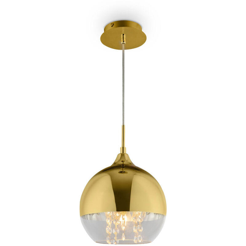 Collezione Fermi LA PERFETTA COMBINAZIONE PER UNA ILLUMINAZIONE DI CLASSE La sospensione contemporanea serie Fermi presenta una struttura in metallo oro e 1 diffusore in vetro e metallo. . Il diffusore è parzialmente in metallo, in tinta con l'armatura, mentre l'altra parte è in vetro trasparente, creando un interessante contrasto tra le due parti. È anche dotata di pendenti decorativi all'interno, che contribuiscono a creare un'atmosfera sofisticata e accogliente. La sospensione è facile da installare ed è dotato di un sistema di regolazione dell'altezza, che lo rende perfetto per ambienti diversi, come sale da pranzo, soggiorni o studi. La sua luce calda e diffusa crea un'atmosfera accogliente e rilassante, perfetta per momenti di relax o per illuminare l'ambiente di lavoro. Le lampade utilizzate sono dotate di attacco E14, e possono essere sostituite facilmente per personalizzare la luminosità e il tono dell'illuminazione. Con la sua combinazione di eleganza e funzionalità, il