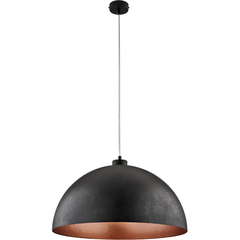 Sospensione diametro 50 in ferro laccato nero con decorazione esterna nera e decorazione interna rame antico con cavo elettrico regolabile 1 luce