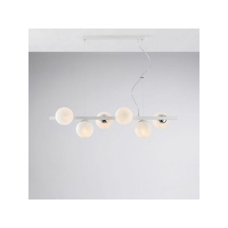 Sospensione in ferro laccato bianco e cromo 6 luci