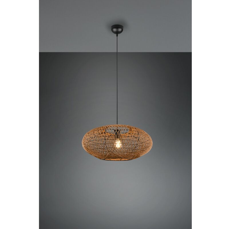Sospensione in Fibre Naturali per Casa Vacanza Hedda La lampada a sospensione HEDDA di Trio Lighting è composta da una montatura in metallo nero opaco e diffusore rotondo bombato realizzato con fibre naturali intrecciate. Cavetto regolabile in lunghezza che permette di variare l'altezza del diffusore in base alle proprie esigenze. È possibile installare una lampadina con attacco E27 da max 40 watt, acquistabile separatamente. Per avere una migliore resa luminosa e al contempo un alto risparmio energetico si consiglia l'utilizzo di lampadine a filamento Led decorative dallo stile vintage. Un lampadario esotico, dal design vintage primitivo, perfetto per creare un'atmosfera vacanziera. Consigliata ad esempio per illuminare la cucina della vostra casa al mare. Disponibile anche la plafoniera della stessa serie. Caratteristiche: Montatura in metallo nero opaco Diffusore rotondo bombato realizzato con fibre naturali intrecciate Cavetto regolabile in lunghezza Attacco per lampadina E27 da