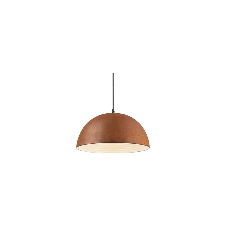 Lampada a sospensione Folk dallo stile industrial con rosone e diffusore in metallo con effetto ossidato. Parabola interna ondulata e smaltata bianca. Altezza regolabile tramite cavo in tessuto nero. Ø 40 x H min 49 / max 224 cm max 1 x 60W E27 IP:20