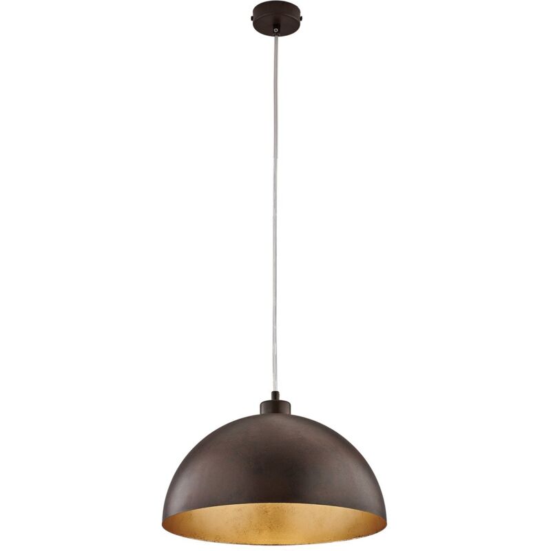 Collezione Marcus PER CHI AMA UN DESIGN ROBUSTO E AUTENTICO Sospensione industrial ad una luce, diametro 35 cm in ferro laccato ruggine e oro antico, con cavo elettrico regolabile.. La finitura conferisce un aspetto autentico e grezzo che caratterizza lo stile industriale. Questo design semplice e robusto è tipico dello stile ispirato alle vecchie fabbriche e agli spazi di lavoro. La forma a cupola dirige la luce verso il basso, rendendolo perfetto per illuminare superfici specifiche come tavoli o piani di lavoro. Disponibile in diversi diametri e finiture.