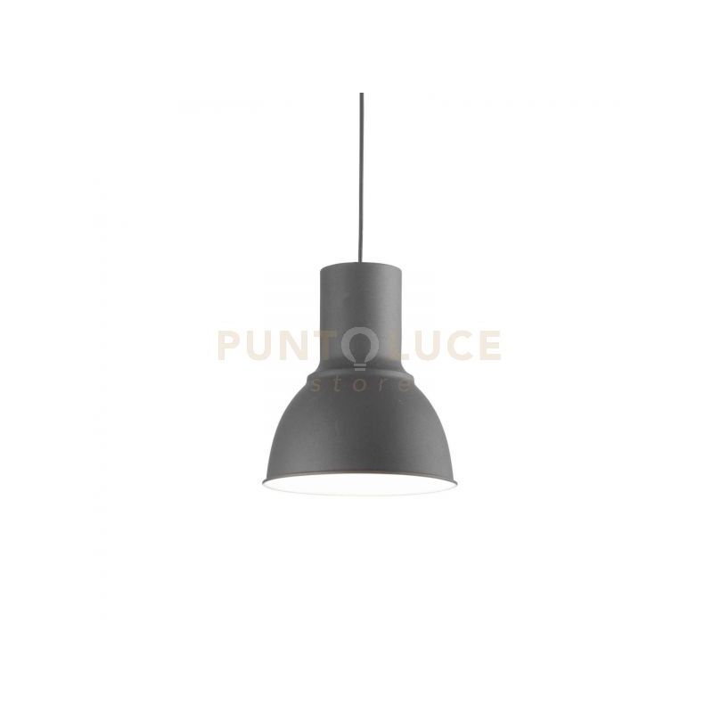 Lampadario a sospensione con montatura e diffusore in metallo. Interno smaltato in bianco. Cavo elettrico regolabile in lunghezza.
