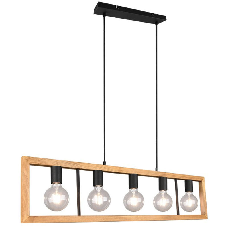 Agra sospensione legno naturale e metallo nero 5 diffusori l. 100cm agra sospensione legno naturale e metallo nero 5 diffusori l. 100cm colore: nero e legno materiale: legno naturale, metallo caratteristiche prodotto: regolabile in altezza montaggio a soffitto ip20 lampade non incluse nella confezione dimensioni prodotto: larghezza 100cm altezza 150cm profondità 8cm peso 1,92kg 2700k - 470 lumen - 230v - 4watt