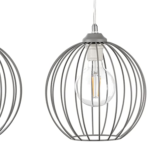 La caratteristica principale di questo lampadario sono i paralumi in metallo color grigio tonde a forma di "gabbietta"