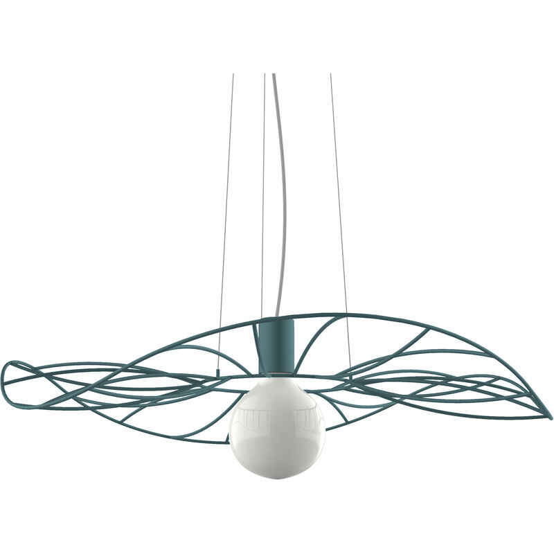 Lampada a sospensione moderna realizzata in metallo laccato. Disponibile nel diametro 60 cm. Cavo di alimentazione in PVC trasparente lungo 120 cm (regolabile in altezza)