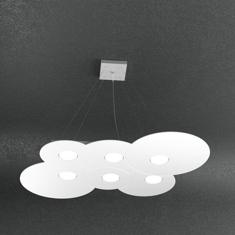 Collezione Cloud IL TUO SPAZIO ILLUMINATO CON STILE MODERNO E SEMPLICITÀ Sospensione di finitura bianca con lastre quadrate di metallo con lavorazioni di fresatura che creano giochi di cerchi sovrapposti.. Il punto di forza del prodotto consiste nel non utilizzare dei led integrati ma una lampadina Gx53 che, una volta montata, arriva a filo della lastra metallica e può essere facilmente sostituita dall'esterno.Questo articolo è disponibile in diverse finiture e/o dimensioni. E' possibile indicarlo nell'apposito campo NOTE presente in conclusione di ordine oppure contattarci dopo aver effettuatol'ordine.