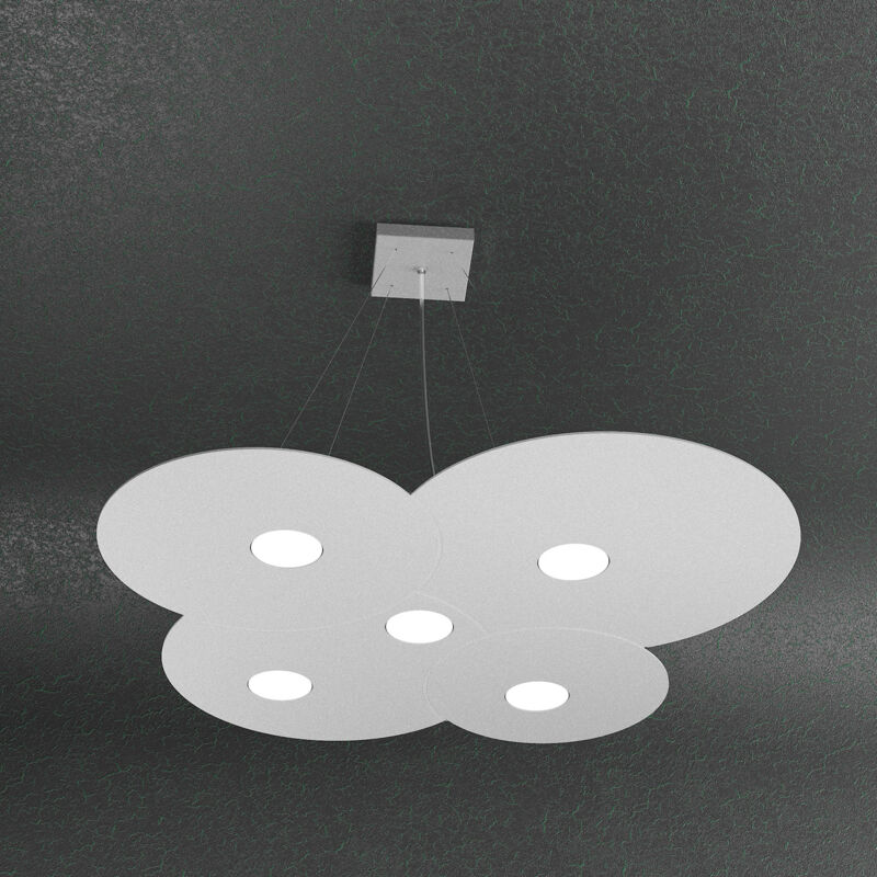 Collezione Cloud IL TUO SPAZIO ILLUMINATO CON STILE MODERNO E SEMPLICITÀ Sospensione di finitura grigia con lastre quadrate di metallo con lavorazioni di fresatura che creano giochi di cerchi sovrapposti.. Il punto di forza del prodotto consiste nel non utilizzare dei led integrati ma una lampadina Gx53 che, una volta montata, arriva a filo della lastra metallica e può essere facilmente sostituita dall'esterno. Disponibile anche nella versione sospensione 5 luci più 2 luci.Questo articolo è disponibile in diverse finiture e/o dimensioni. E' possibile indicarlo nell'apposito campo NOTE presente in conclusione di ordine oppure contattarci dopo aver effettuatol'ordine.