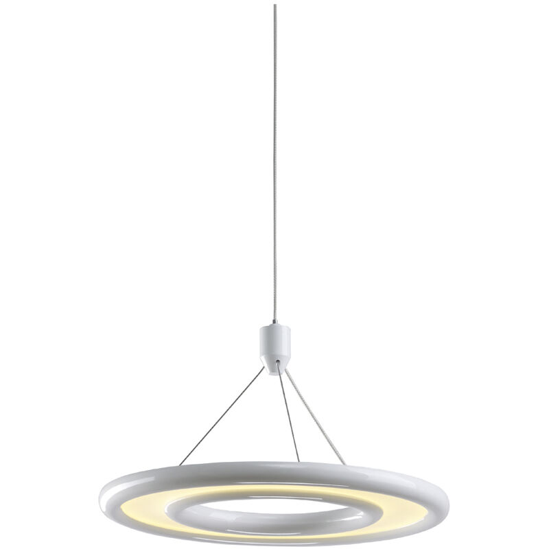 Collezione Endurance DESIGN FUTURISTICO Lampada da soffitto della collezione. È disponibile con finitura laccata bianca, realizzata in acciaio e policarbonato e illuminazione a LED integrata con una potenza di 18 watt, 750 lumen, temperatura colore 3000k (luce calda). È possibile regolare l'altezza della sospensione in base alle proprie esigenze grazie al cavetto in acciaio. Perfetto da posizionare in soggiorno, ufficio, zona living e fornire luce generale.