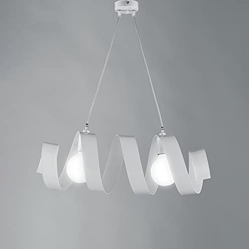 Sospensione Moderna 2 Luci in Ferro Laccato Bianco Serie Helix