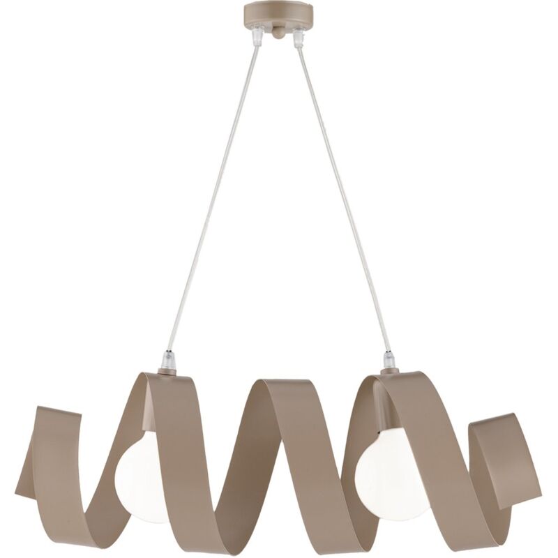 Collezione Helix TWIST DI EMOZIONI Sospensione moderna a 2 luci in ferro laccato tortora con pittura termoindurente con struttura a ricciolo orizzontale. . Cablaggio trasparente;