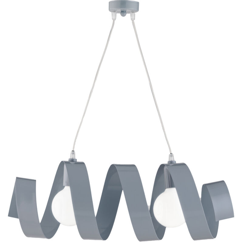 Collezione Helix TWIST DI EMOZIONI Sospensione moderna a 2 luci in ferro laccato grigio con pittura termoindurente con struttura a ricciolo orizzontale. . Cablaggio trasparente;