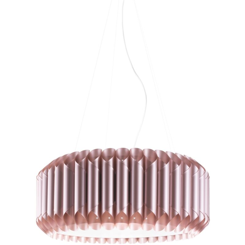 Collezione Louise MAESTOSITA' E DELICATEZZA Sospensione a 1 luce in polilux rosa metallico, realizzata da molteplici fogli arrotolati su se stessi e affiancati tra di loro a formare un cerchio;