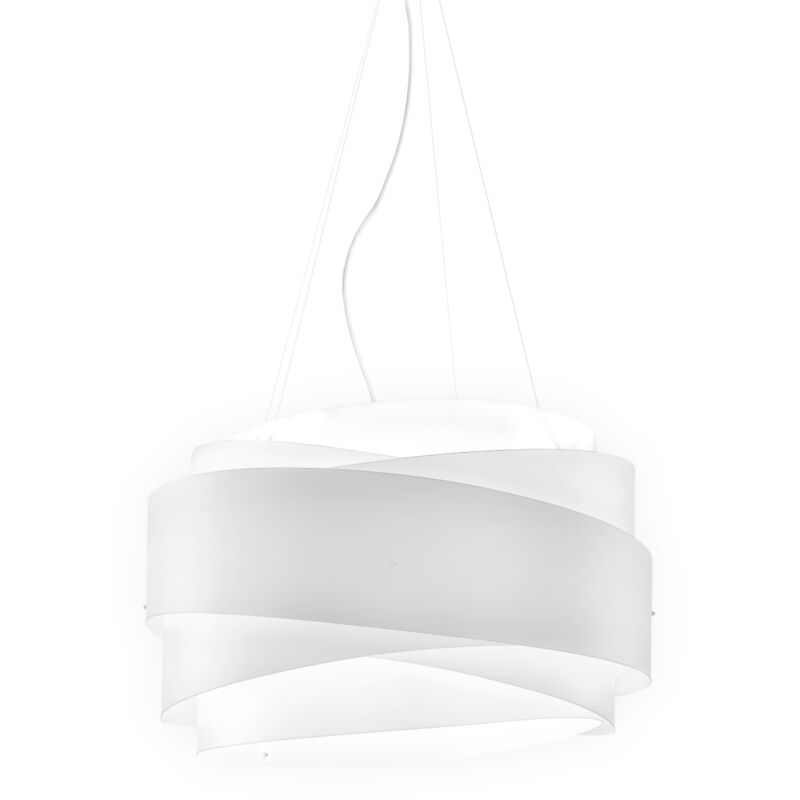 Collezione Bea ILLUMINAZIONE D'EFFETTO Sospensione moderna a 3 luci realizzata in polilux bianco, un materiale innovativo, facile da pulire, infrangibile ed estermamente accattivante. La lampada è dotata di un cavo trasparente regolabile lungo 120 cm e di una base in metallo cromato. Creata avvolgendo a mano quattro superfici una sull'altra, scandisce un ritmo variabile attraverso le differenti linee di taglio. La luce si diffonde in modo leggero e diafano, grazie alla progressione dei fogli di polilux verso l'estremità. Una forma versatile e briosa, disponibile in diverse eleganti finiture, per illuminare tutti gli ambienti contemporanei e moderni.