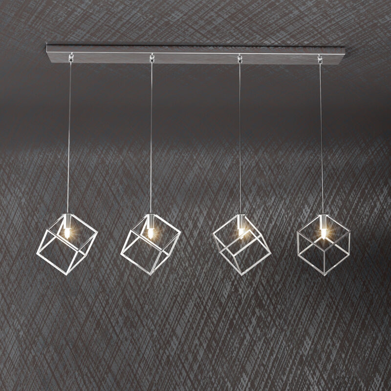 Collezione Frame LO STILE MINIMAL SI FA CUBICO Sospensione 4 luci in metallo cromato, rosone rettangolare lineare e diffusori cubici stilizzati in metallo cromato.. Le sospensioni sono regolabili in altezza, così puoi personalizzare il tuo spazio. La luce si diffonde in modo uniforme e delicato, creando un effetto di eleganza e luminosità. Frame è la luce che si adatta a ogni stile, dal moderno al classico, dal salotto alla camera da letto. La Serie Frame è una collezione di lampade che si distinguono per il loro stile minimalista e sofisticato.Questo articolo è disponibile in diverse finiture e/o dimensioni. E' possibile indicarlo nell'apposito campo NOTE presente in conclusione di ordine oppure contattarci dopo aver effettuatol'ordine.