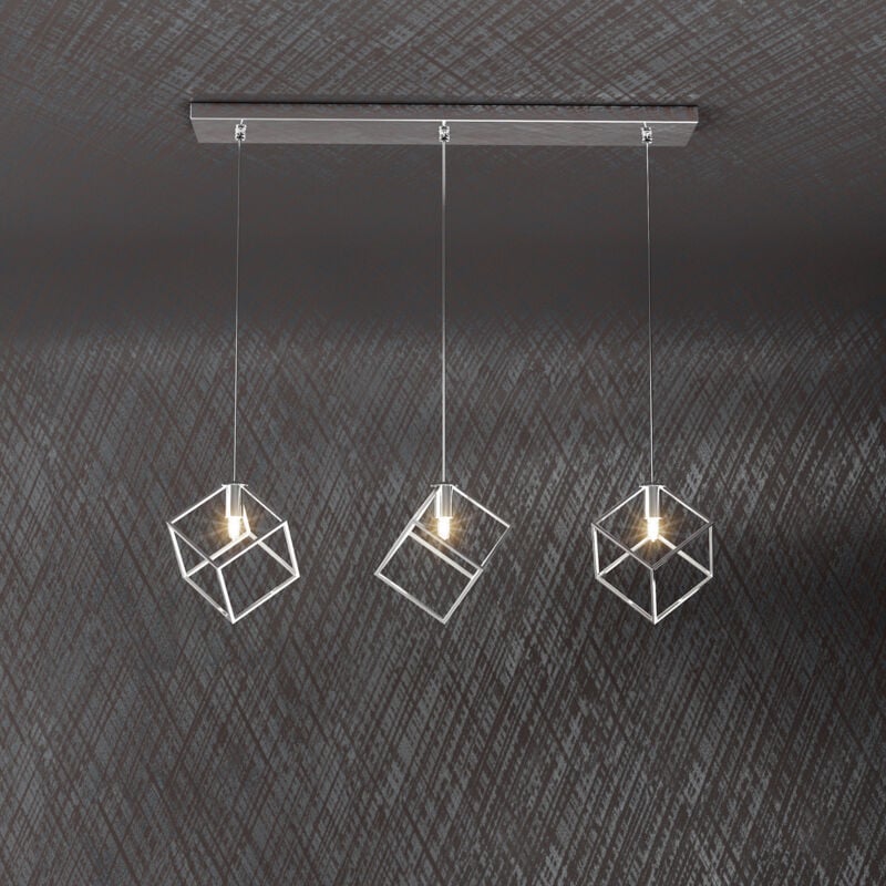 Collezione Frame LO STILE MINIMAL SI FA CUBICO Sospensione 3 luci in metallo cromato, rosone rettangolare lineare e diffusori cubici stilizzati in metallo cromato.. Le sospensioni sono regolabili in altezza, così puoi personalizzare il tuo spazio. La luce si diffonde in modo uniforme e delicato, creando un effetto di eleganza e luminosità. Frame è la luce che si adatta a ogni stile, dal moderno al classico, dal salotto alla camera da letto. La Serie Frame è una collezione di lampade che si distinguono per il loro stile minimalista e sofisticato.Questo articolo è disponibile in diverse finiture e/o dimensioni. E' possibile indicarlo nell'apposito campo NOTE presente in conclusione di ordine oppure contattarci dopo aver effettuatol'ordine.
