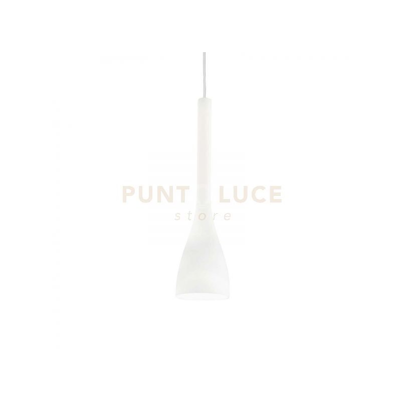 Lampada a sospensione con diffusore in vetro soffiato incamiciato e acidato, bianco all' internno e scolorato all' esterno. Cavo a lunghezza regolabile.