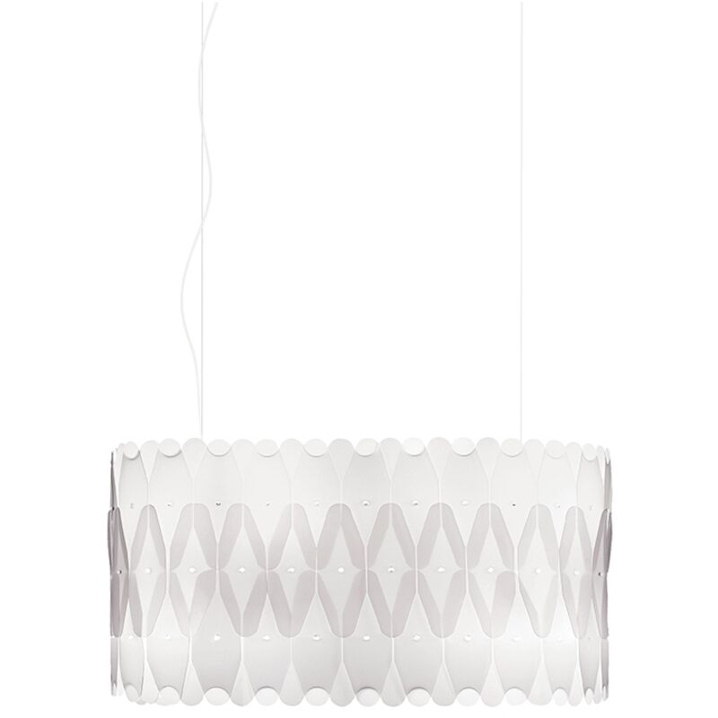 Collezione Amanda ISPIRATA ALLE PIASTRELLINE DI LISBONA Sospensione moderna a forma ovale a 6 luci, realizzata in polilux colore bianco, con cavo trasparente lungo 120 cm e rosone in metallo cromato. La lampada si ispira al design delle piastrelline tipiche di Lisbona. La struttura, in tre dimensioni, è composta da un'anima in Polilux alla quale sono applicate delle piccole mattonelline a pastiglia che, a seconda delle cromie scelte, possono dare un effetto monocromatico o multicolore. Disponibile in diverse misure e finiture, grazie alla versatilità, estetica e praticità del materiale, illumina con fascino ed eleganza saloni, camere da letto, uffici e locali commerciali moderni e contemporanei.