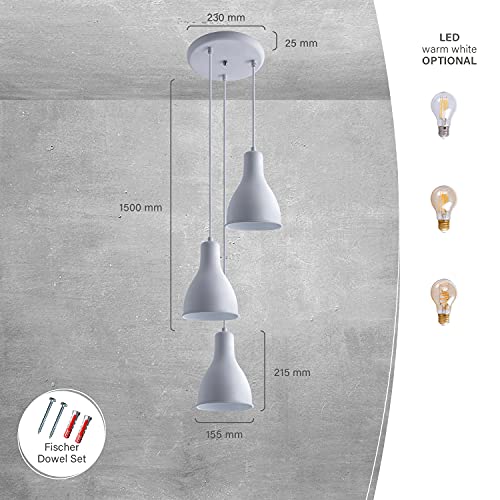 Paco Home Sospensione Plafone Sala Da Pranzo Cucina Sopra Tavola Pranzo Con Cavo Tessuto 1,5m Regolabile E27, Colore: Bianca, Tipo di lampada: Triemissione
