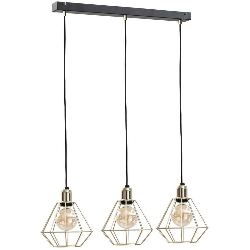 Keter Lighting - 558 Como Bar Sospensione Plafoniera Oro, 60cm, 3x E27 | Finitura: Oro | Altezza: 120 cm | Lunghezza: 60 cm | Larghezza: 20 cm | Tipo di lampada: E27 | N. di lampade: 3 | Lampadina inclusa: no | Dimmerabile: Sì - Sono necessarie lampadine dimmerabili | Potenza (max): 60 W