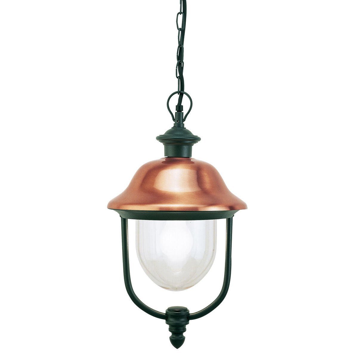 Sospensione con struttura in alluminio dal colore grigio rame e paralume in plastica con finitura satinata.