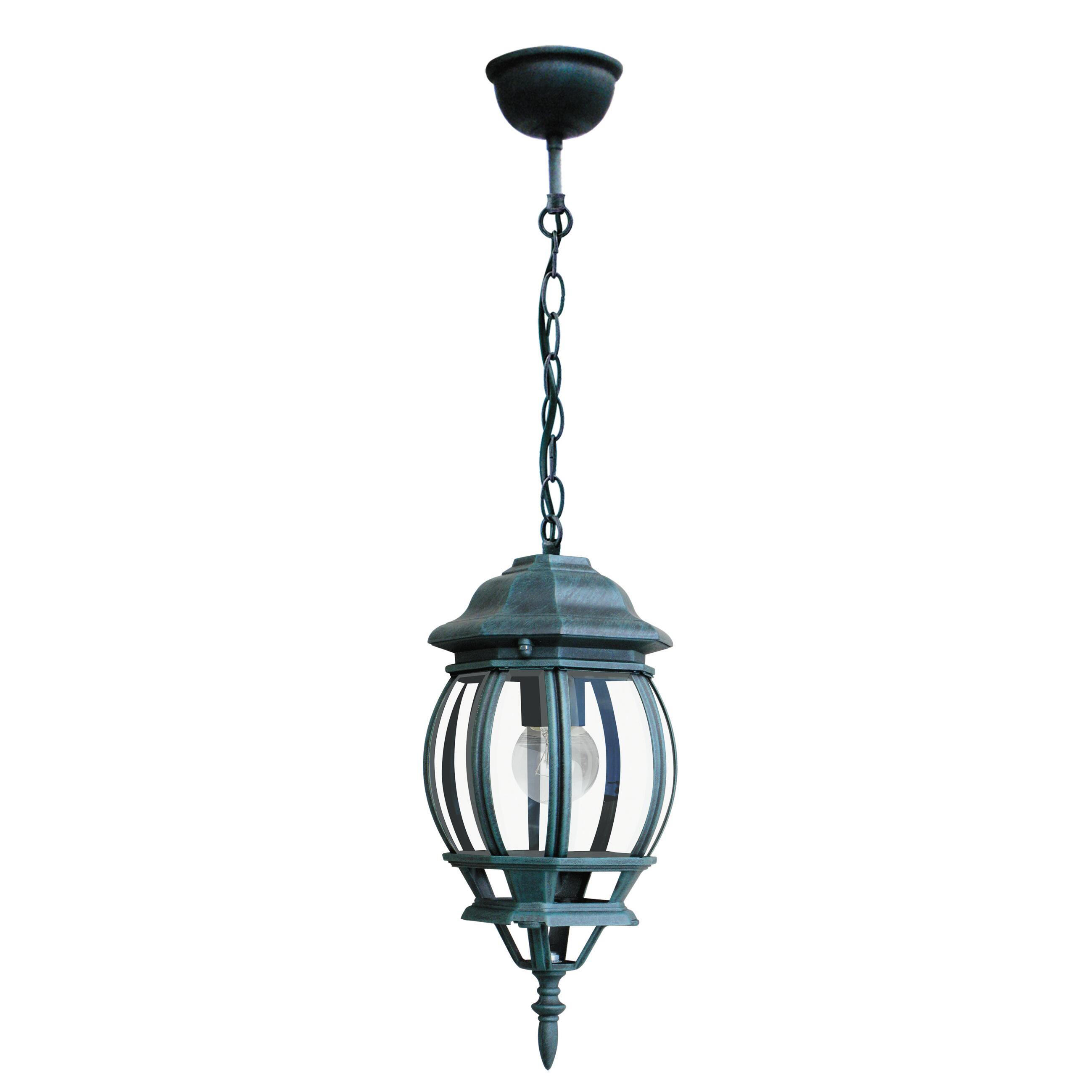 Sospensione in alluminio pressofuso nero pennellato verde con diffusore in vetro trasparente