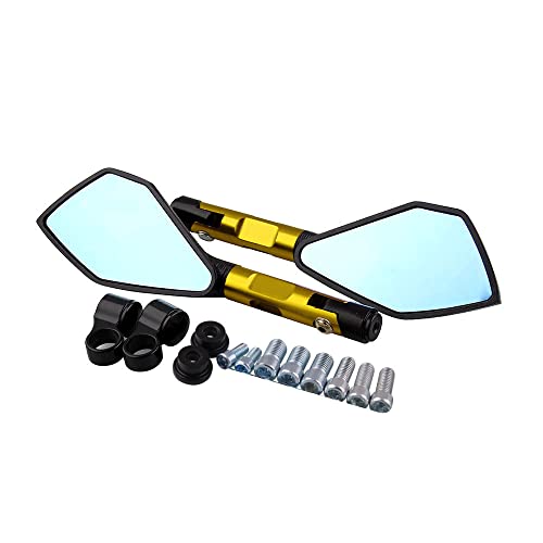 Sostituibile Specchietti Retrovisori Laterali Moto,MoreChioce Universal Forma di Diamante Specchietti Moto Retrovisori in Lega di Alluminio Rotazione di 360°Staffa,D'oro