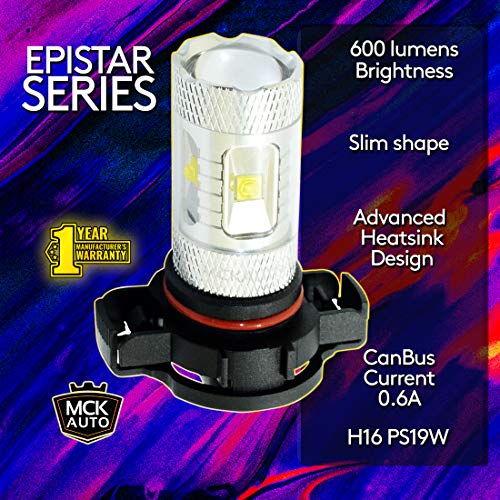 MCK Auto - Sostituzione per PS19W H16 PSX24W LED CanBus Set di lampadine bianche molto chiare e senza errori compatibili con A3 8PA
