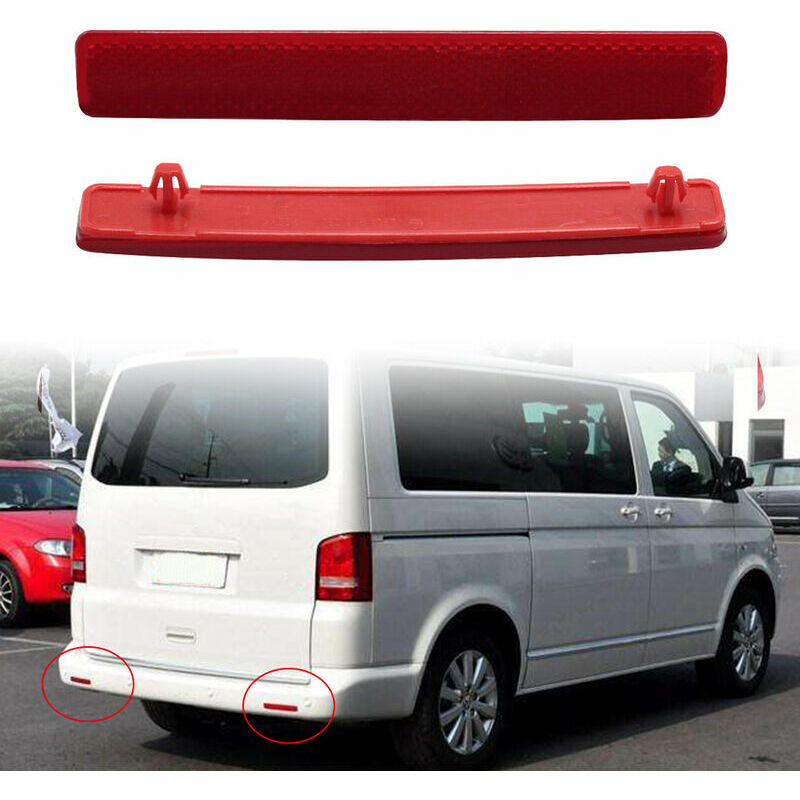 Caratteristiche: 2 pezzi (una coppia) di luci di montaggio del riflettore del paraurti posteriore. Tipo di illuminazione: riflettore paraurti posteriore sinistro e destro per VW T5 Transporter. Una coppia (sinistra e destra) di luce rossa del gruppo del riflettore del paraurti posteriore. Sostituzione diretta del riflettore rosso del paraurti posteriore originale OEM. Specifiche: Numeri di parte del produttore: 7E0945105, 7E0945106 Colore: rosso Peso confezione lente: 410 g Dimensioni confezione: 16,5 * 4,5 * 2 cm Elenco confezione: un paio di riflettore rosso paraurti posteriore con riflettore lente rossa