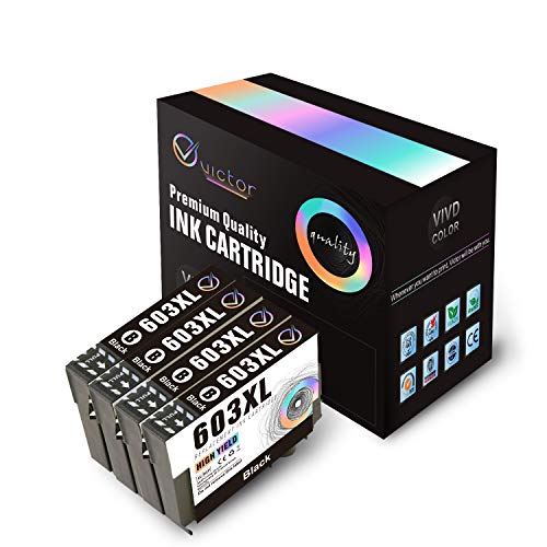 Sostituzione Victor 4 cartucce d'inchiostro nero 603XL per Ep 603 compatibile con Ep Home XP-3100 XP-4100 XP-2100 XP-2105 XP-3105 XP-4105, Workforce WF-2810 WF-2830 WF-2835