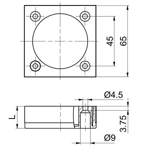 Altezza: 30 mm (non regolabile) / corpo del piedino: 65 x 65 mm / piastra di montaggio / Piedino Protettivo: 65 x 65 mm / distanza di foratura (piastra di montaggio): 45 mm