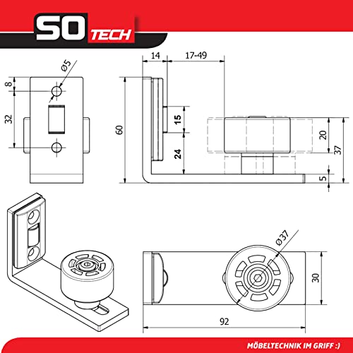 SOTECH Guida a pavimento per porte scorrevoli ST-BF-01 | Guida a rulli per porte di spessore da 17 a 49 mm | Guida a pavimento regolabile per porte scorrevoli | Guida inferiore con montaggio a parete
