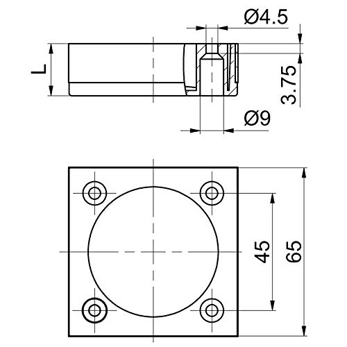 Altezza: 35 mm / corpo del piedino: quadrato 65 x 65 mm / piastra di montaggio: 65 x 65 mm / distanza di foratura: 45 mm / non regolabile in altezza